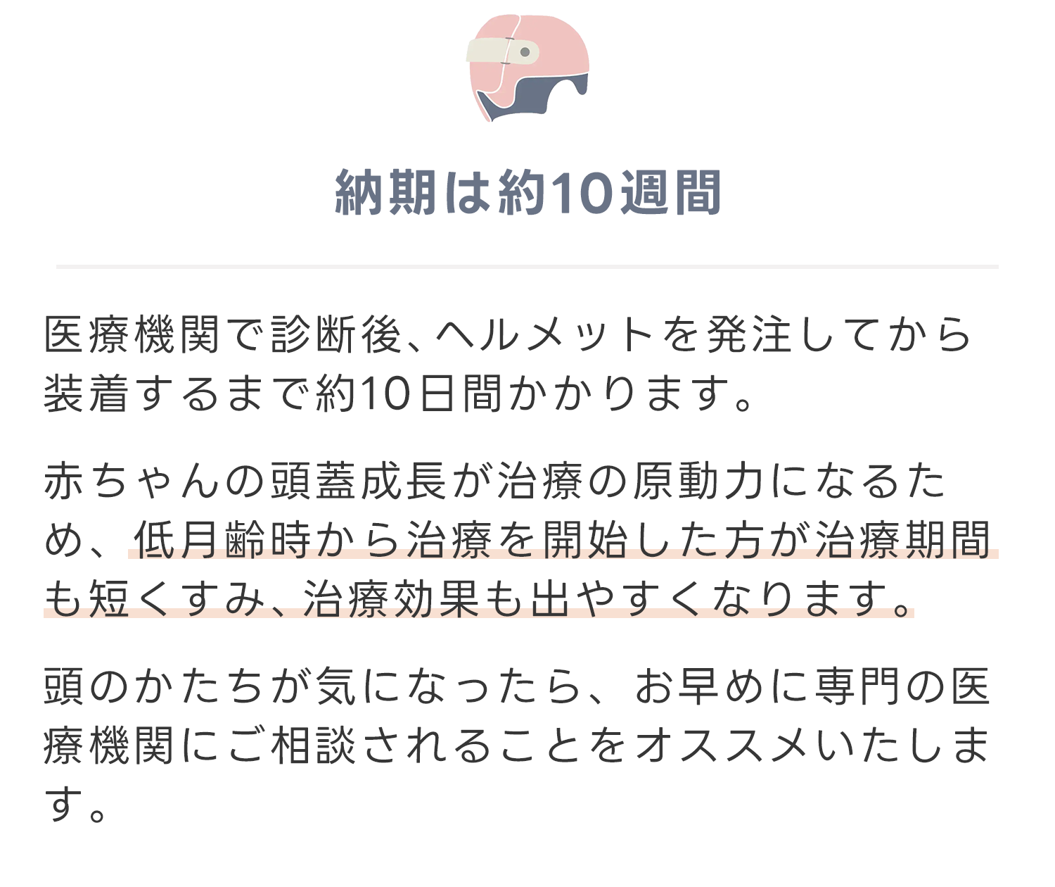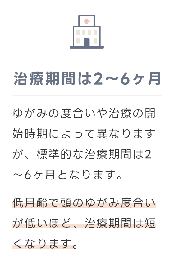 頭のサイズが急速に成長する生後3ヶ月~7ヶ月の間が最も治療効果が期待できる時期です。